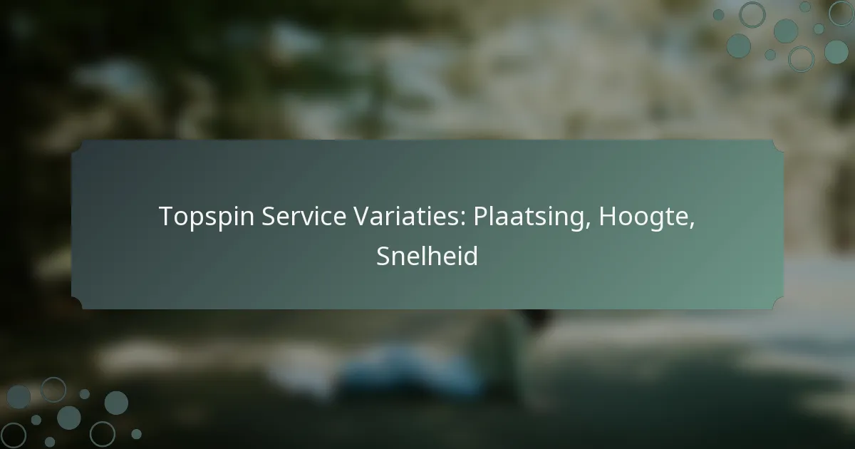 Topspin-services worden gekenmerkt door hun opwaartse spin, die ervoor zorgt dat de bal snel daalt na het oversteken van het net. Belangrijke variaties omvatten plaatsingsstrategieën, hoogte-opties en snelheidsverschillen, die elk unieke tactische doeleinden dienen in een wedstrijd.